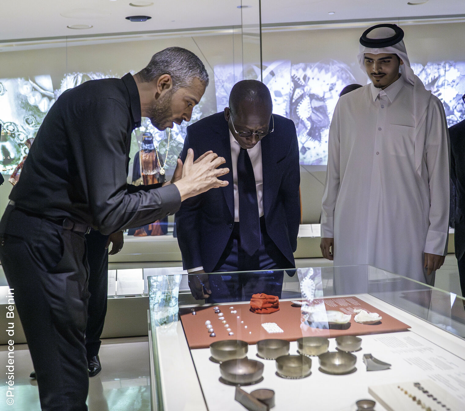 Dans le cadre de sa visite de travail au Qatar, le Président de la République, Monsieur Patrice TALON, s’est rendu, le lundi 19 mai 2025 au Musée National du Qatar à Doha. Cette visite s'inscrit dans une dynamique de coopération culturelle et diplomatique entre les deux pays.