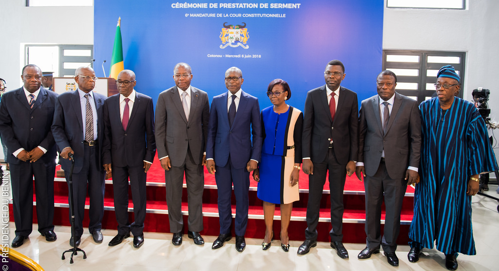 Les nouveaux membres de la Cour Constitutionnelle, 6e mandature, désignés conformément à l'article 115 de la Constitution ont prêté serment ce mercredi 6 juin 2018 dans les locaux de Sèmè City (Ex Primature) devant le Bureau de l'Assemblée Nationale et le Président de la République.