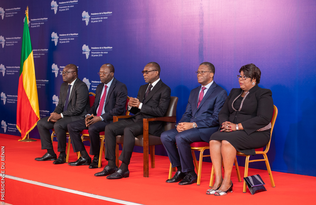 La salle de conférence de Sèmè City, ex primature, a abrité dans la matinée de ce mardi 08 janvier 2019 la cérémonie d’échanges de vœux entre le Président de la République, monsieur Patrice Talon, et les représentants de divers corps constitués. Cette traditionnelle cérémonie de présentation de vœux qui a mobilisé présidents d’institutions, le corps diplomatique accrédité au Bénin et le haut Commandement militaire s’est déroulée en 3 temps selon un cérémonial simple mais empreint de solennité.