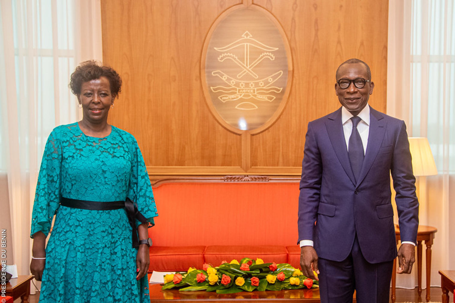 Au deuxième jour de sa visite de travail au Bénin, la Secrétaire Générale de l'Organisation Internationale de la Francophonie (OIF), Madame Louise MUSHIKIWABO a été reçue en audience par le Chef de l'Etat, Monsieur Patrice Talon, dans la matinée de ce jeudi 24 septembre 2020, au palais de la Marina.