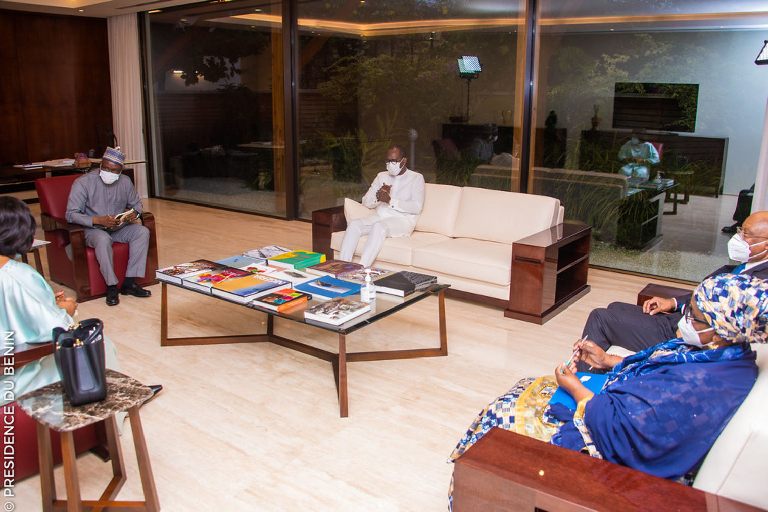 Conduite par S.E.M. Shirley AYOKOR BOTCHWAY, Ministre des Affaires étrangères du Ghana, Présidente du Conseil des ministres de la CEDEAO et composée de Monsieur Jean-Claude Kassi BROU, Président de la Commission de la CEDEAO et Madame Halima AHMED, Commissaire aux finances de la CEDEAO, la délégation a été reçue dans la soirée du vendredi 12 février 2021 par le Président de la République, Monsieur Patrice TALON. La délégation a échangé avec le Chef de l'État sur le processus électoral en cours au Bénin, processus devant aboutir à l'organisation de l'élection présidentielle du 11 avril 2021 dans la paix et la transparence.
