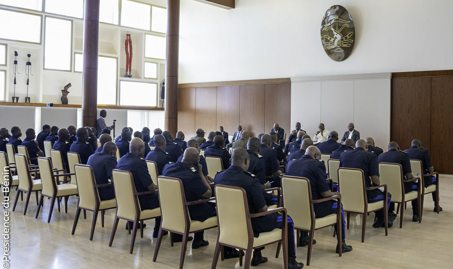 Le Président de la République, Monsieur Patrice TALON, a eu une séance de travail avec les responsables de la Direction Generale de la Police Républicaine, les Commissaires du Grand Nokoué ainsi que les Préfets des départements de l'Atlantique, de l'Ouémé et du Littoral.