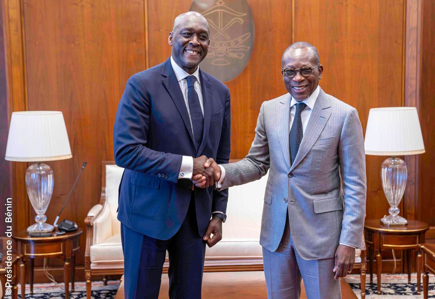 Cette rencontre importante a été l'occasion pour le Président TALON et le Directeur Général de la SFI, Monsieur Makhtar DIOP, d'échanger sur les opportunités de coopération et de partenariat entre le Bénin et la SFI en vue de promouvoir le développement économique et social du Bénin.