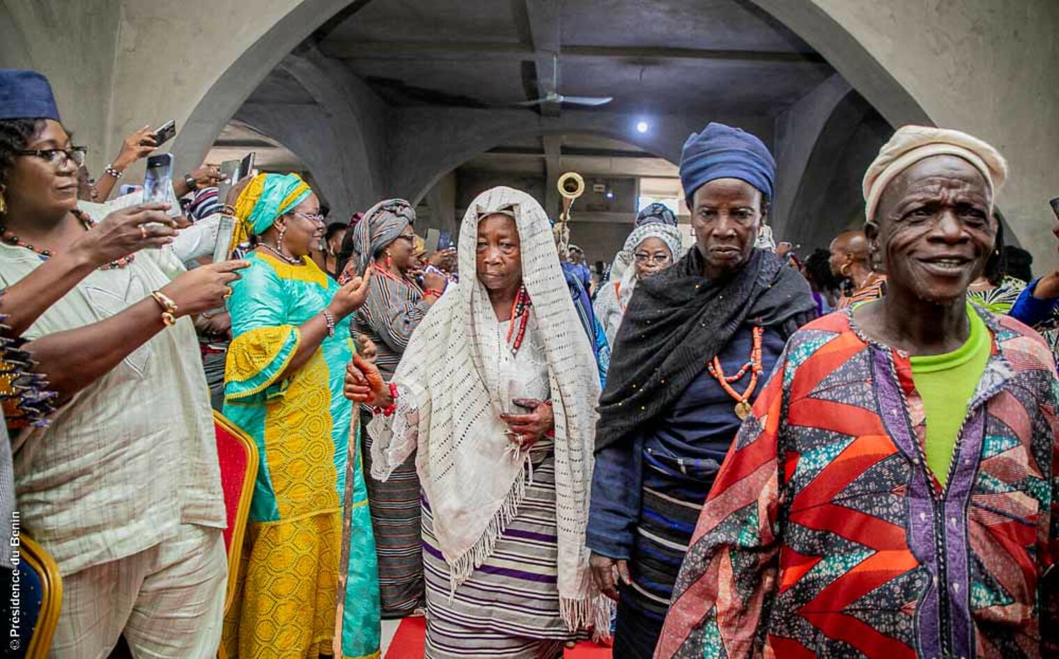 Les échanges ont porté principalement sur la place de la "GNON KOGUI" (Titre honorifique désignant la Vice-Reine) au sein de la Cour impériale. Les participantes se sont informées sur le processus ayant conduit à sa désignation, un processus empreint de traditions séculaires et de considérations politiques et sociales. Elles ont voulu comprendre aussi comment cette décision, bien que stratégique, reflète également la volonté de maintenir un équilibre au sein des institutions impériales.