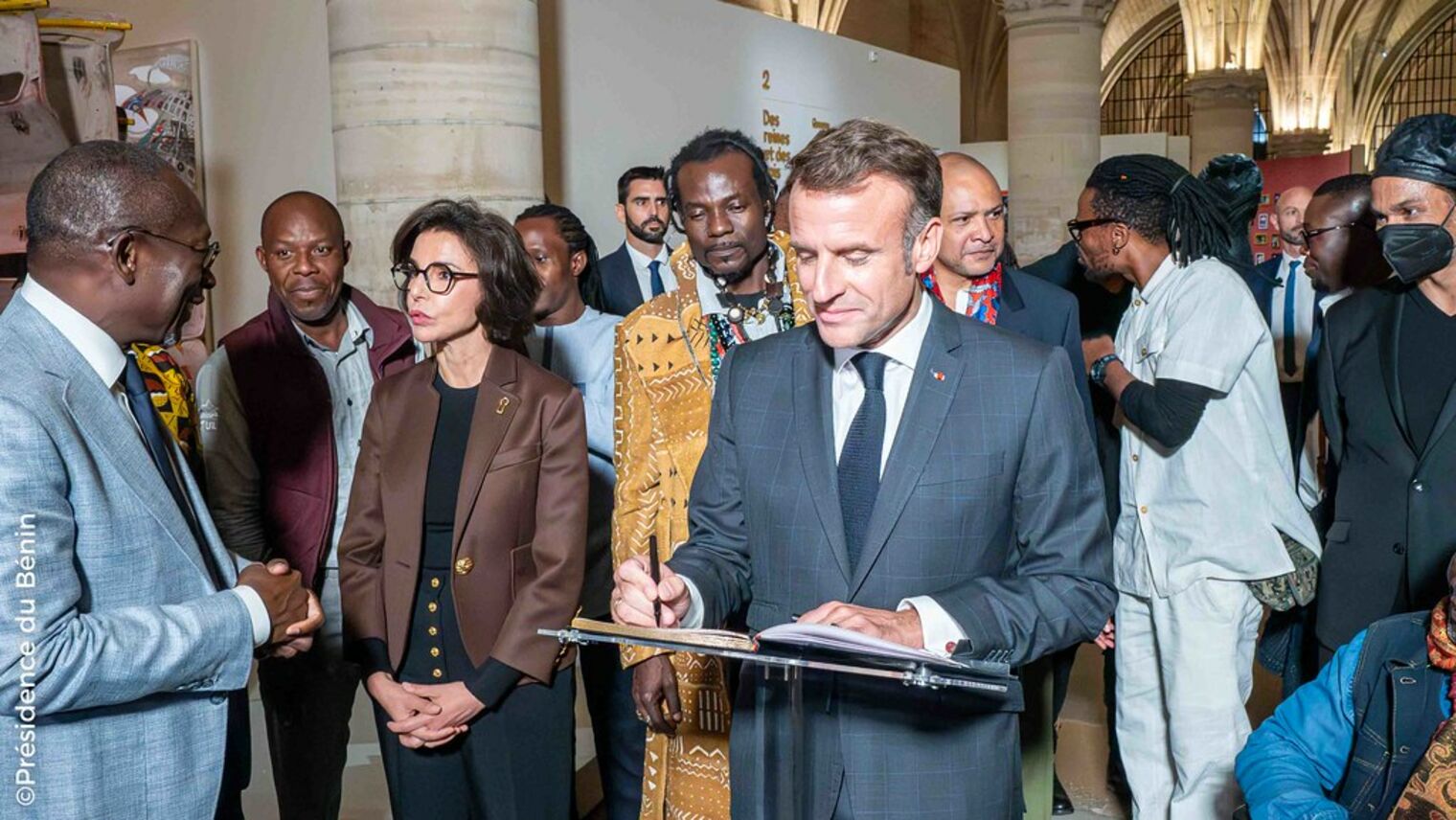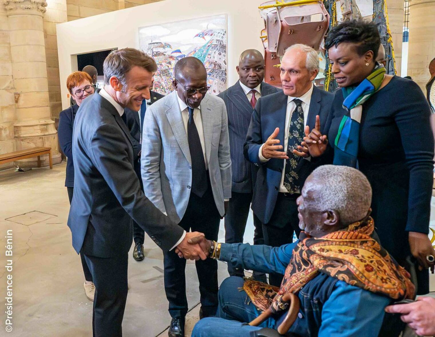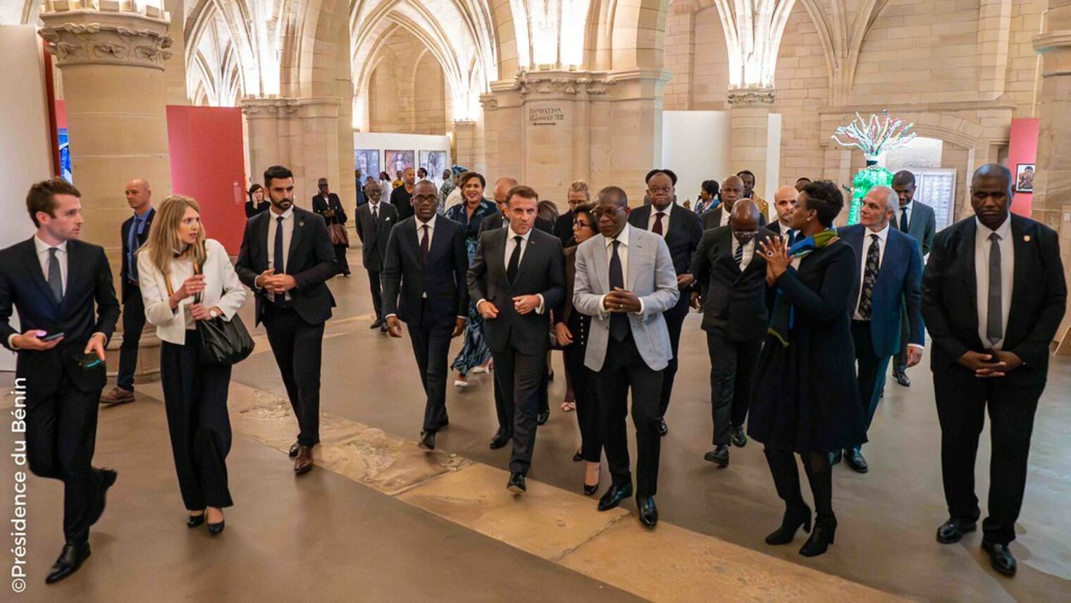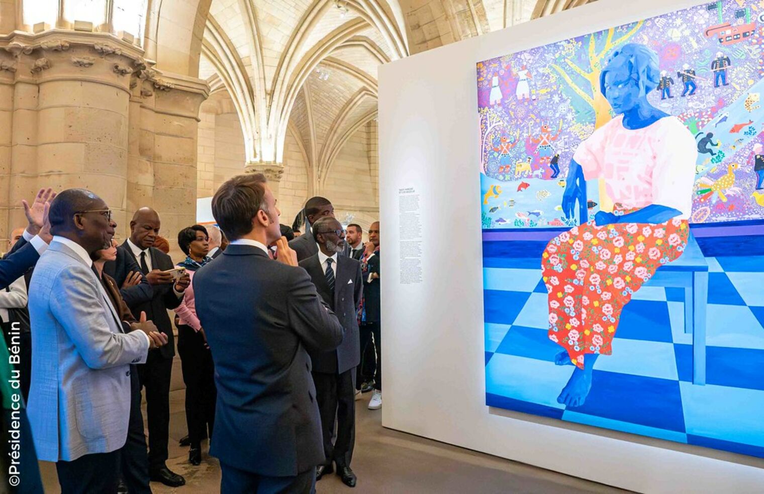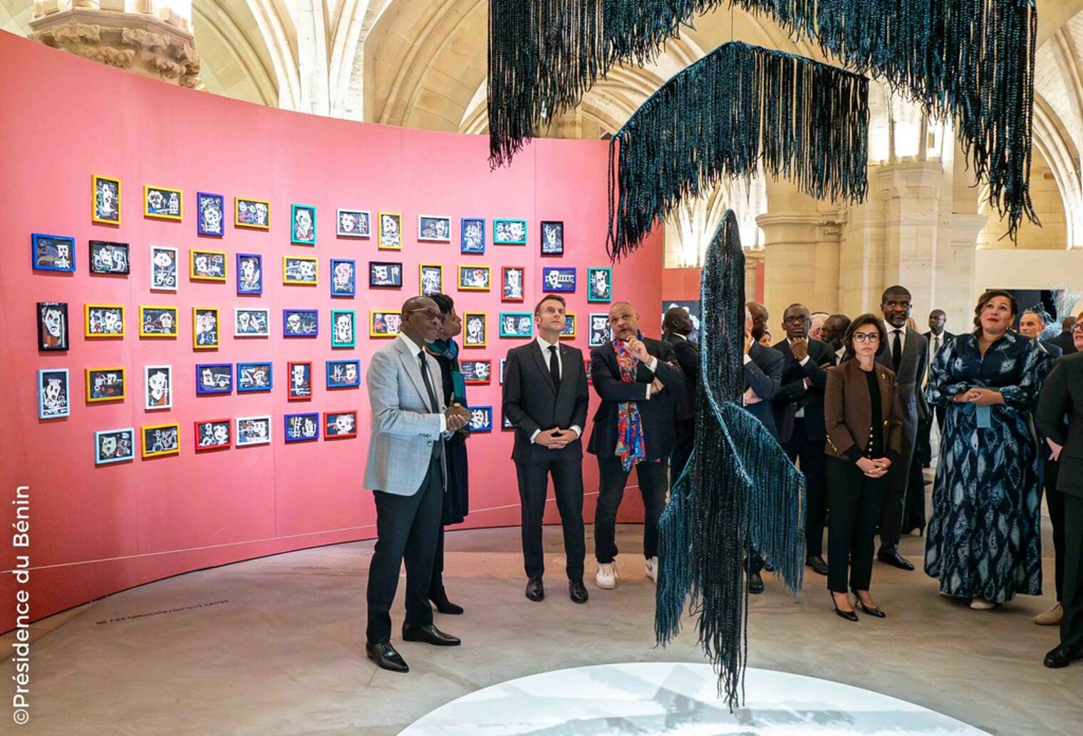 Le Président de la République, Son Excellence Monsieur Patrice TALON, et son homologue de la République française, Emmanuel MACRON, ont procédé, le jeudi 03 octobre 2024 à la Conciergerie de Paris, à l'inauguration de l'exposition itinérante d'art contemporain du Bénin qui s'ouvre au public, ce vendredi. Au Centre des monuments nationaux à Paris, les deux Chefs d'État ont été accueillis par une délégation impressionnante d'acteurs béninois et français impliqués dans la production de l'exposition ainsi que des artistes qui exposent.