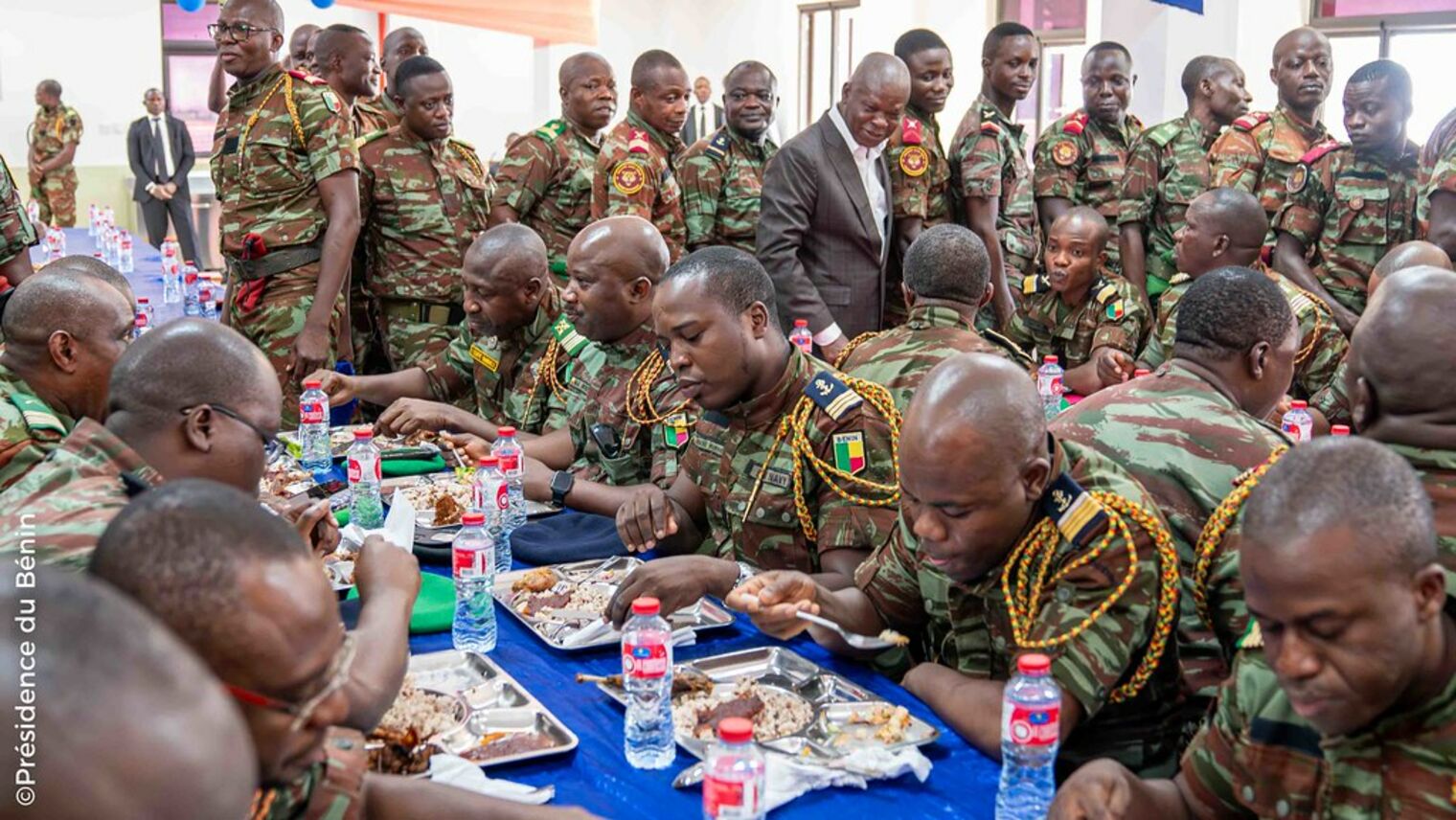 La joie se lisait sur les visages des soldats et leur Commandement, à l'occasion du déjeuner pris par le Président de la République avec les vaillants soldats présents. Ce déjeuner en compagnie du Président TALON, faut-il le rappeler, fut un instant mémorable de réconfort moral pour les soldats, en cette fin d'année 2024.