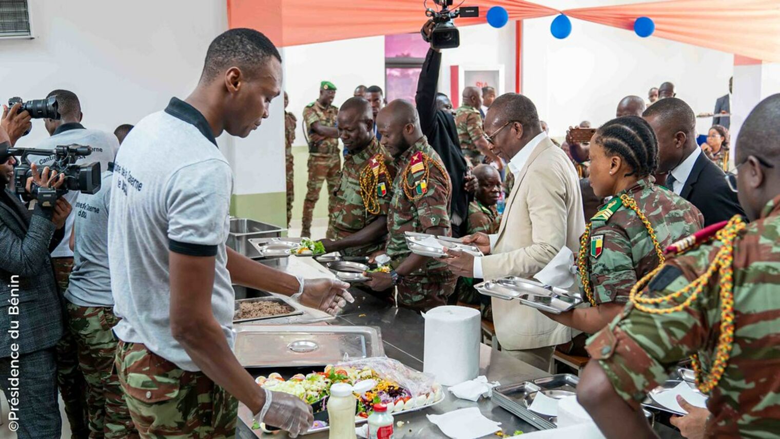 Scène historique et mémorable ce lundi 30 décembre 2024 à la caserne militaire de Dessa à Allada. Le Président Patrice TALON au terme d'une séance d'échanges qu'il a eue avec les troupes a fait le rang. Il s'est fait servir à l'image de tous les soldats présents et ce, dans une ambiance bon enfant, un déjeuner partagé pour leur témoigner sa fierté.