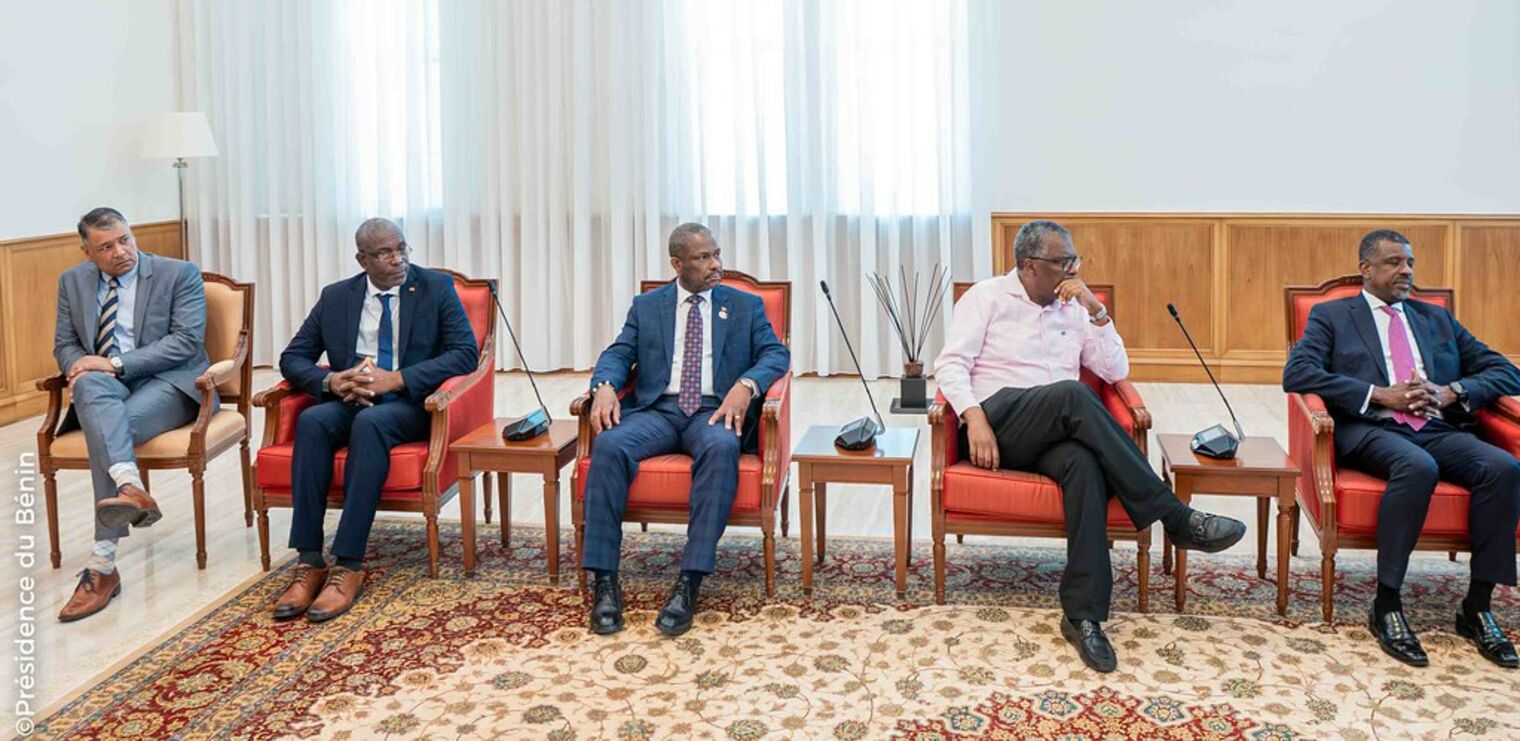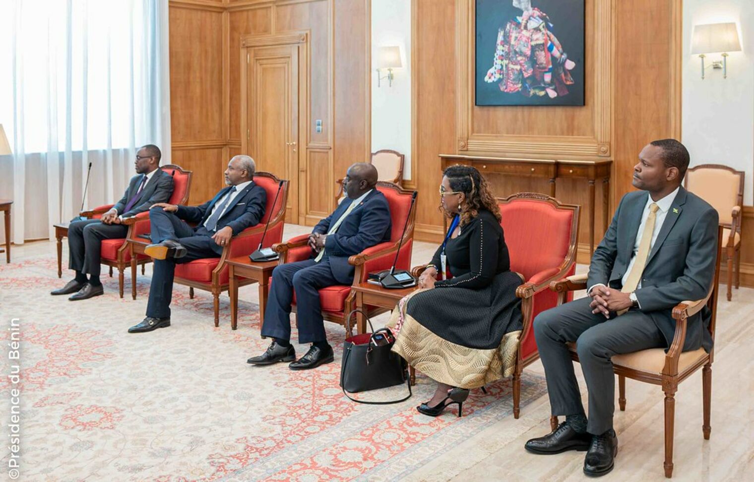 Introduite au cabinet du Chef de l’État par le chef de la diplomatie béninoise, Monsieur Olushegun Adjadi BAKARI, la délégation est allée remercier le Chef de l’Etat béninois pour avoir initié cette rencontre de proximité entre le Bénin et les pays de la Caraïbe. C'était aussi l'occasion de faire le point des discussions lors de la rencontre de ce jour qui s’est tenue à Sofitel Cotonou Marina Hôtel, et de recueillir les conseils du Président Patrice TALON pour la pérennisation des actions qui auront un impact direct sur les économies des pays concernés et leurs populations.
