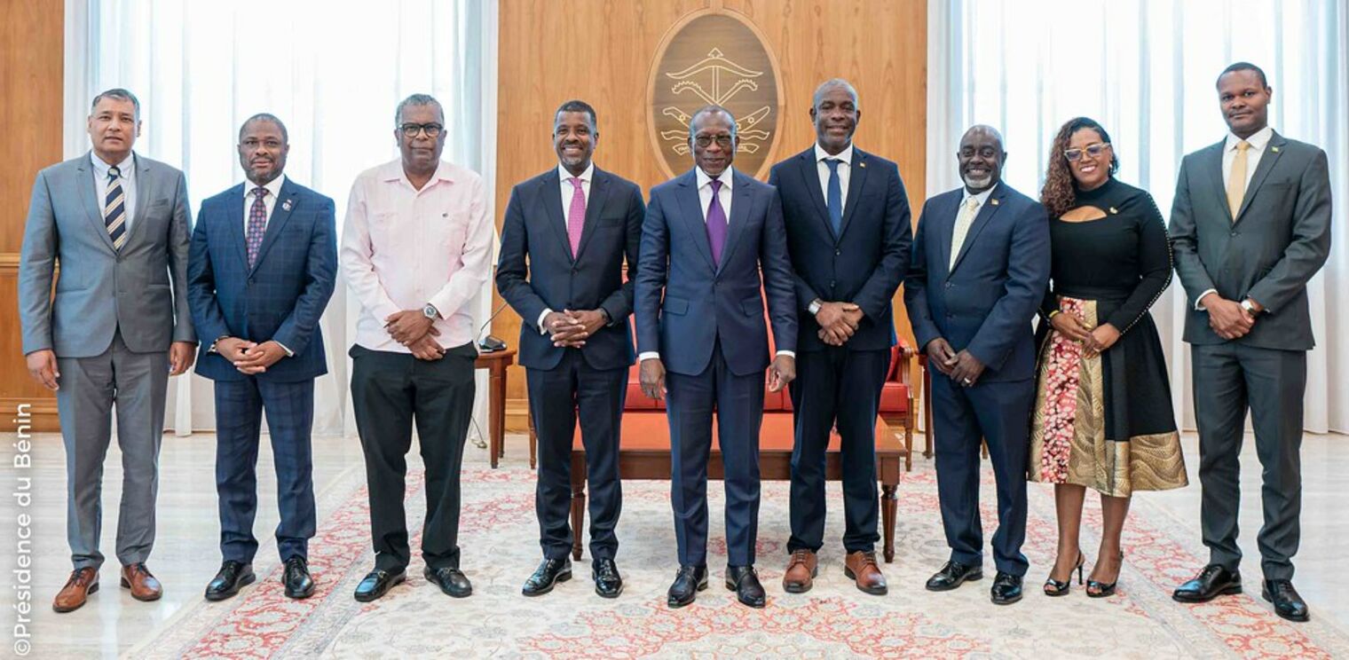 Cotonou accueille depuis ce mercredi 08 janvier 2025, la Première réunion ministérielle entre le Bénin et la Communauté des Caraïbes (CARICOM). En marge de cette réunion ministérielle qui se veut être un engagement commun à construire des ponts durables entre les régions, une délégation des Ministres des Affaires étrangères des États membres de la Communauté des Caraïbes (CARICOM) a été reçue en audience, ce mercredi 08 janvier 2025 au Palais de la Marina, par le Président de la République, Monsieur Patrice TALON.