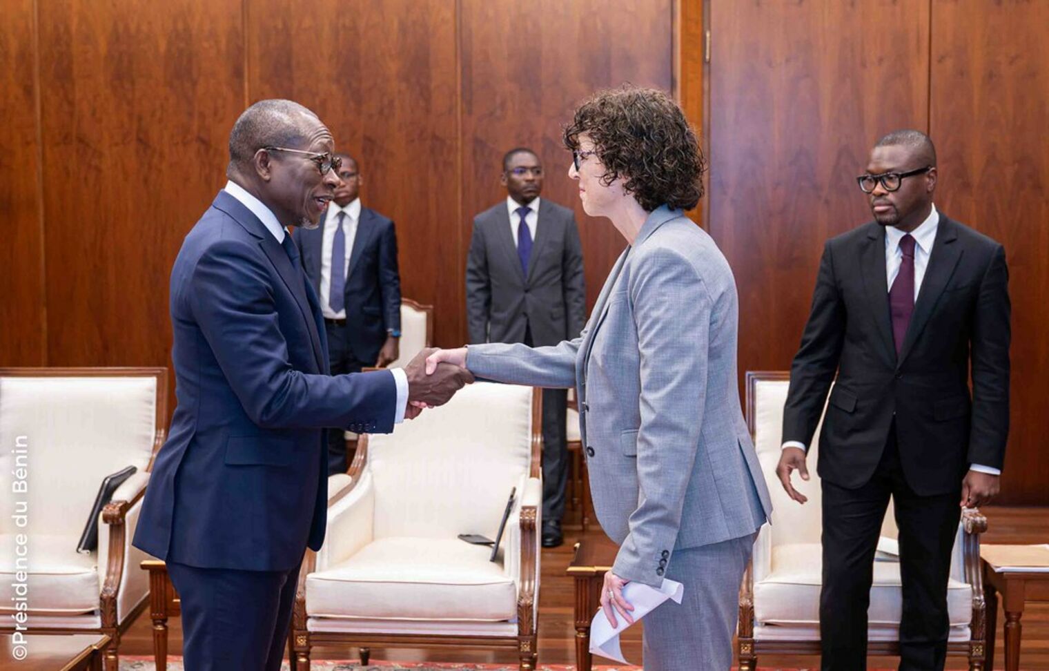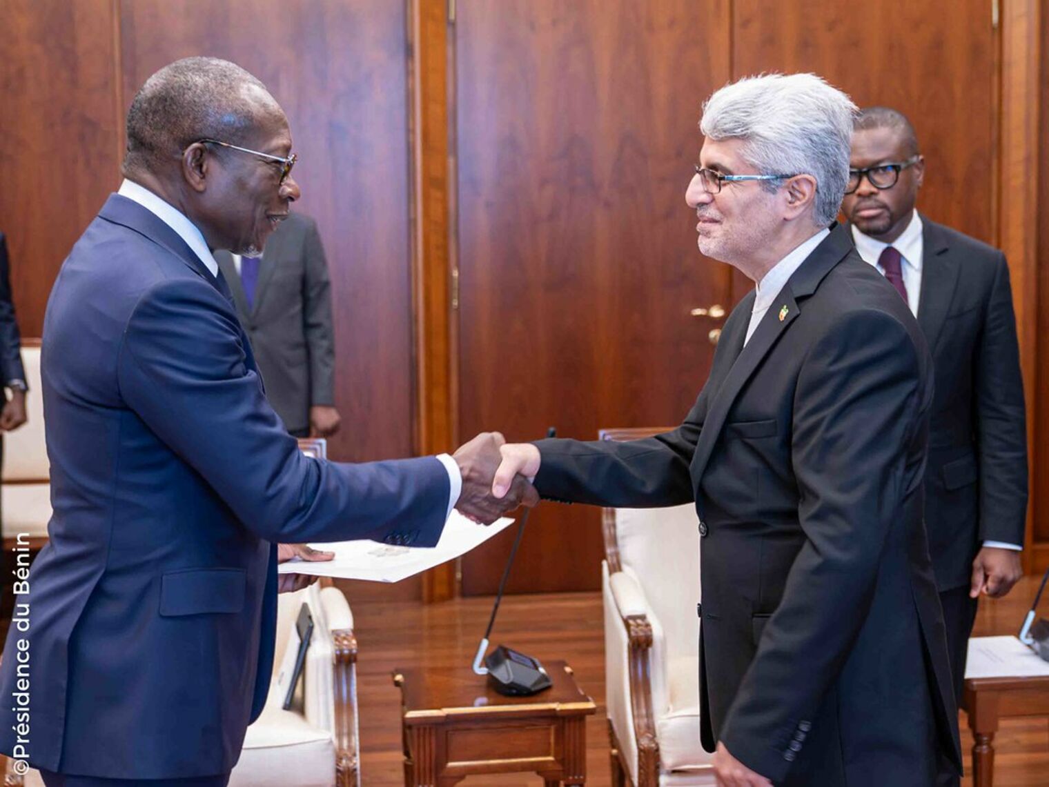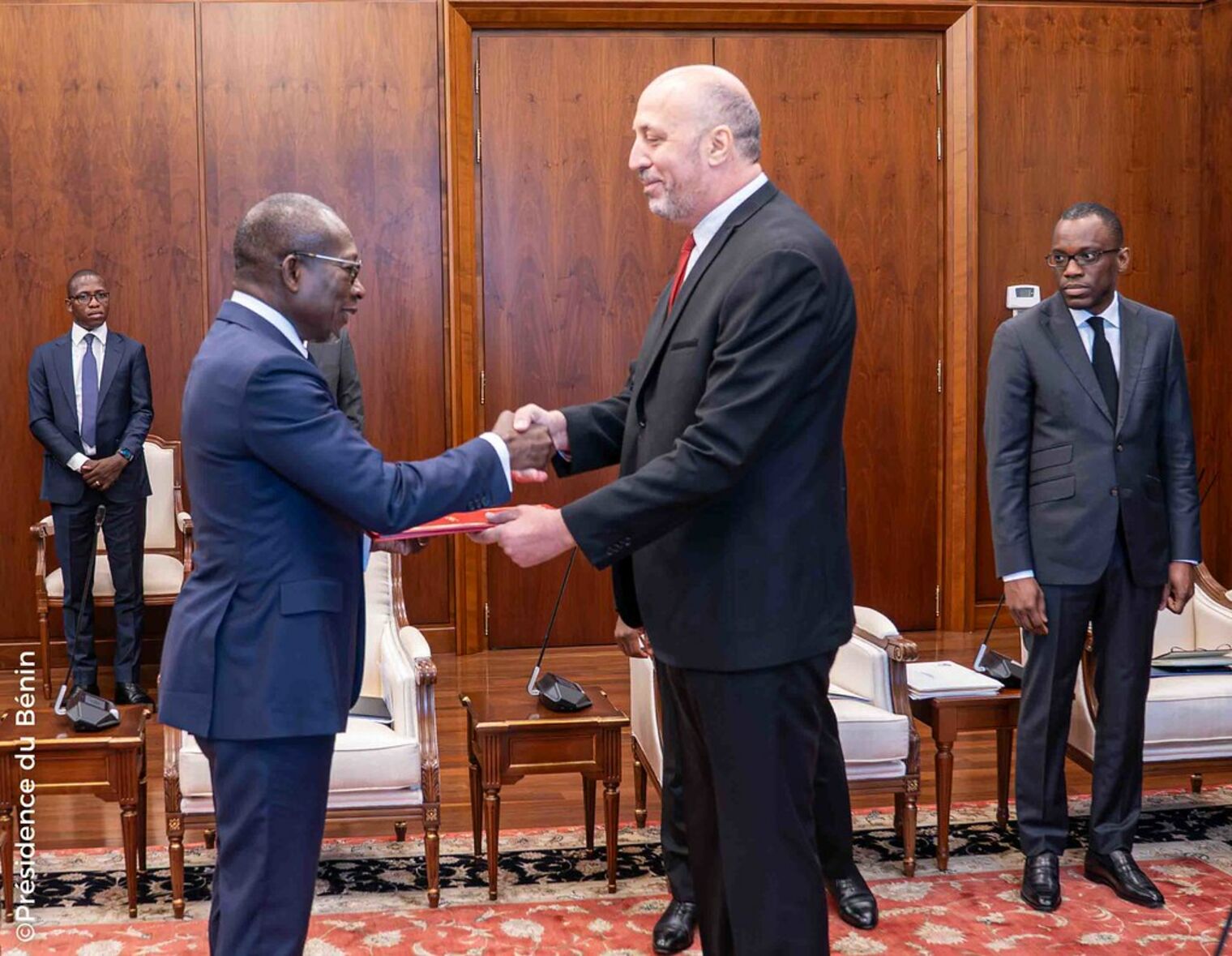 À la suite de la cérémonie protocolaire de remise des lettres de créance, le Chef de l'État a échangé avec chacun des nouveaux Ambassadeurs et leurs différentes délégations. Au cours de l'audience qui a suivi chaque cérémonie traditionnelle de présentation de lettres de créance, l’accent a été mis sur le renforcement des liens de coopération bilatérale et de développement des relations économiques et culturelles entre les différents pays et le Bénin.