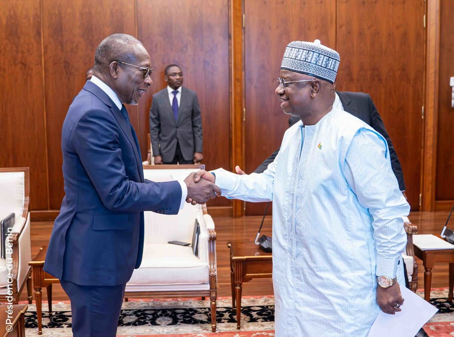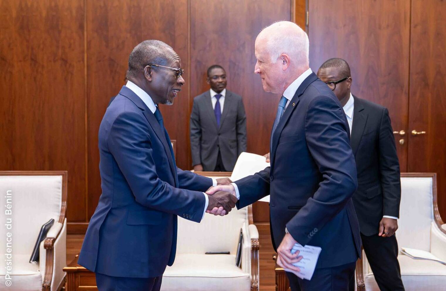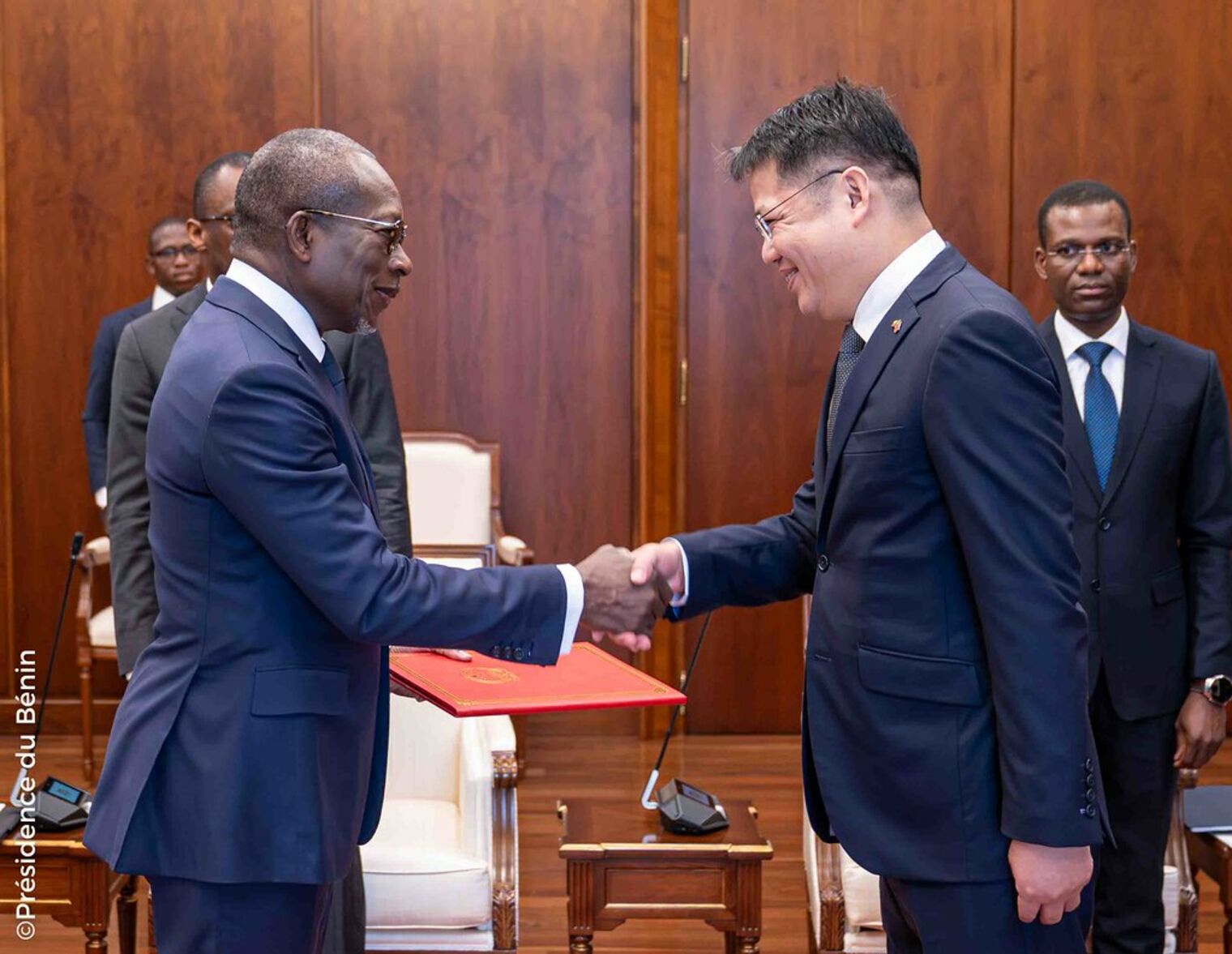 À la suite de la cérémonie protocolaire de remise des lettres de créance, le Chef de l'État a échangé avec chacun des nouveaux Ambassadeurs et leurs différentes délégations. Au cours de l'audience qui a suivi chaque cérémonie traditionnelle de présentation de lettres de créance, l’accent a été mis sur le renforcement des liens de coopération bilatérale et de développement des relations économiques et culturelles entre les différents pays et le Bénin.