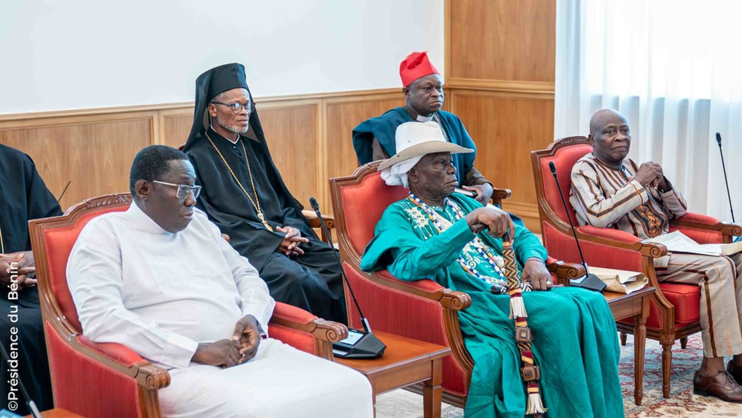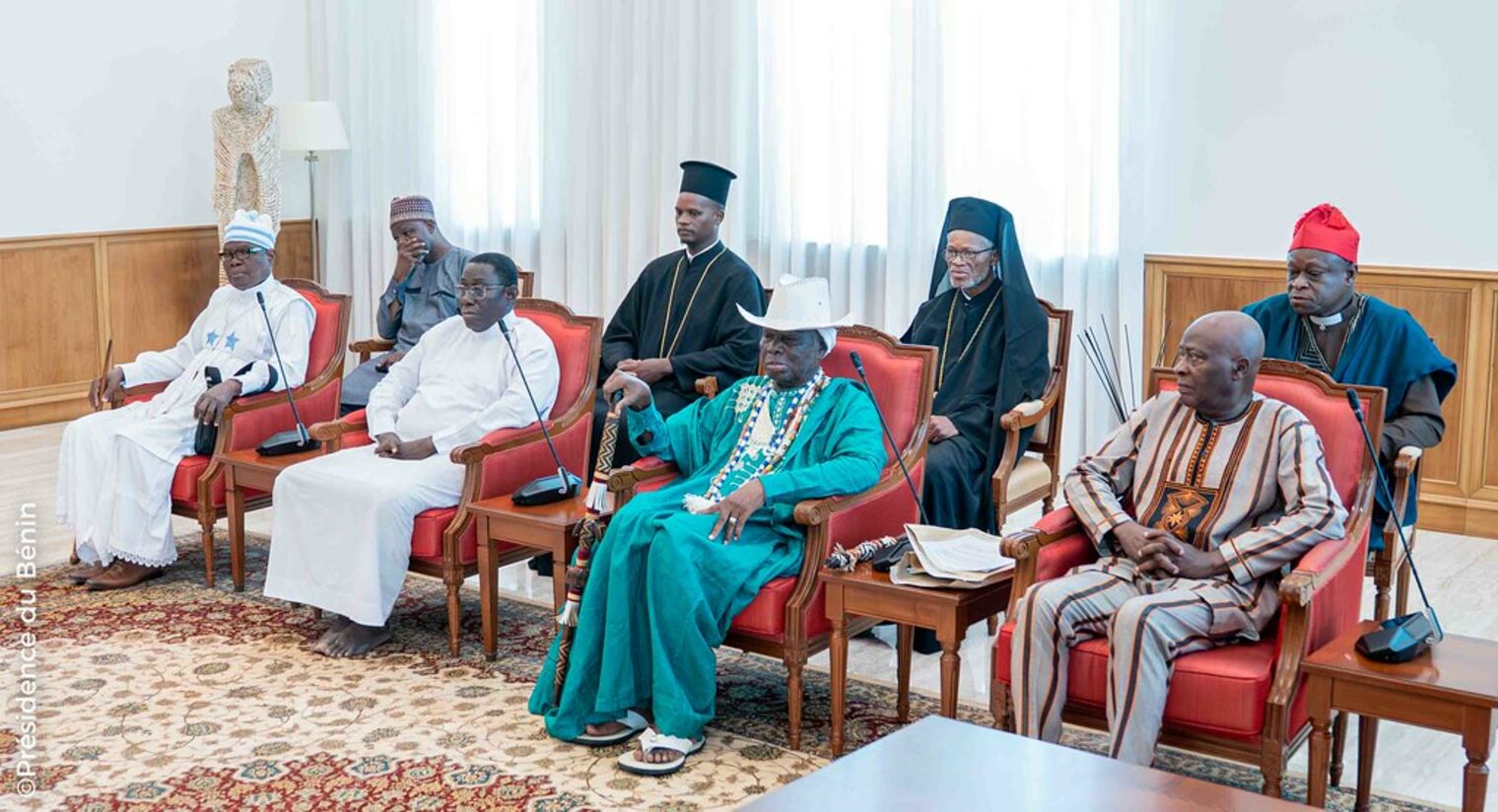 Ce Jeudi 10 avril 2025 au Palais de la Marina, le Président de la République du Bénin, Monsieur Patrice TALON, a reçu en audience une délégation du Cadre de Concertation des Confessions Religieuses. Cette rencontre s'inscrit dans le cadre des efforts du gouvernement pour promouvoir le dialogue interreligieux et renforcer la cohésion sociale dans le pays.