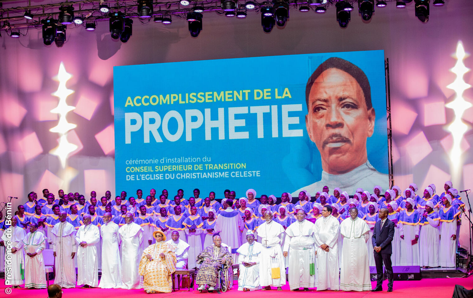 Le samedi 26 avril 2025, les quinze membres du Conseil Supérieur de Transition de l’Église du Christianisme Céleste ont été officiellement installés au cours d'une cérémonie solennelle à Cotonou, en présence du Président Patrice TALON et de plusieurs membres du Gouvernement. Au nombre de ces personnalités, temoins de ce renouveau de l’Église du Christianisme Céleste, les Ministres Jean-Michel ABIMBOLA, Yvon DETCHENOU, Alassane SEIDOU, le Secrétaire Général de la Présidence Pascal Irénée KOUPAKI, le Porte-parole du Gouvernement Wilfried Léandre HOUNGBÉDJI, le Préfet du Littoral Alain OROUNLA, ainsi que plusieurs autres cadres, autorités religieuses et civiles, dignitaires et fidèles.