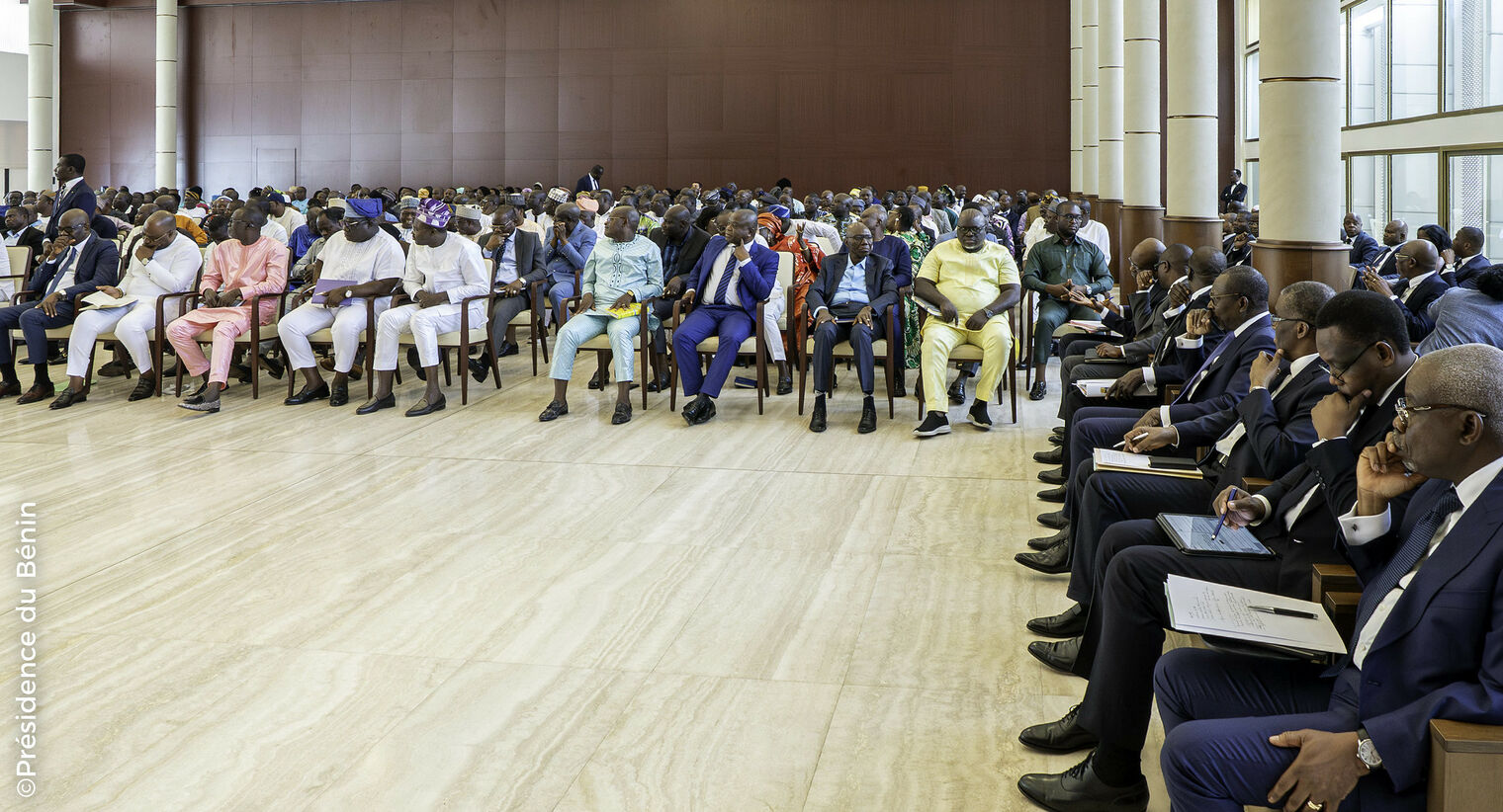 Dans un esprit d’écoute et d’ouverture, le Président de la République a exhorté les participants à parler « sans langue de bois », affirmant que « le gouvernement est disposé à analyser toutes les propositions issues de ce séminaire ». Il a également insisté sur la nécessité de dépasser les clivages politiques : « Le Bénin nous appartient à tous. Nous avons l’obligation de le construire ensemble, pour les générations futures ».