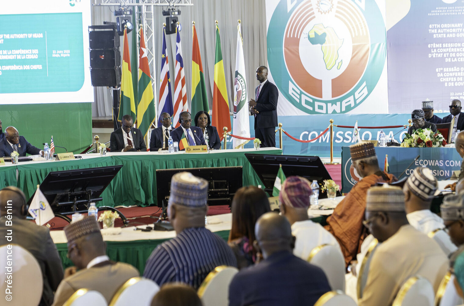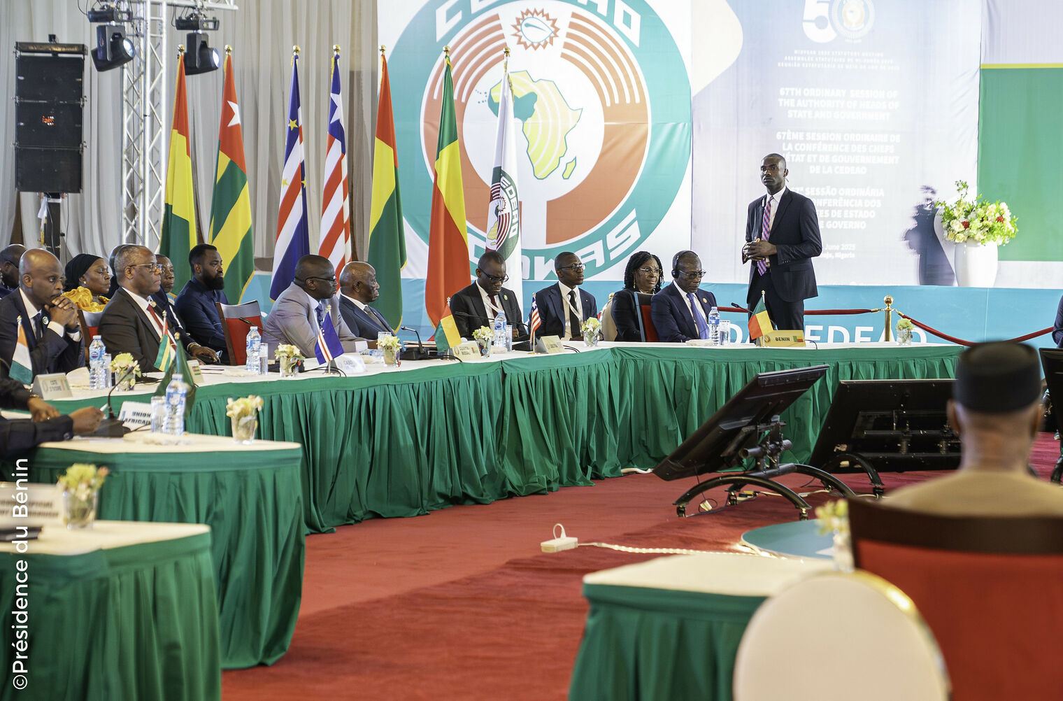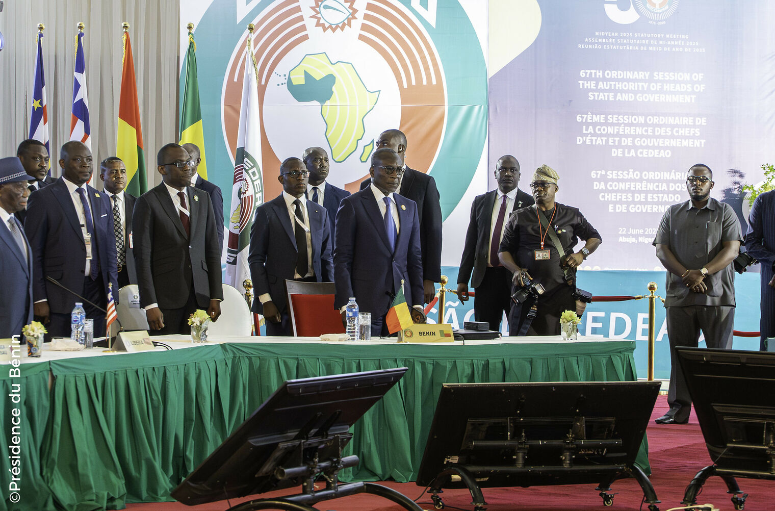 Le dimanche 22 juin 2025, le Président de la République, Monsieur Patrice TALON, a participé à la 67ème Session ordinaire de la Conférence des Chefs d'État et de Gouvernement de la Communauté Économique des États de l’Afrique de l’Ouest (CEDEAO), tenue à Abuja, au Nigéria. Cette rencontre de haut niveau, organisée dans un contexte marqué par de profondes mutations régionales, a rassemblé plusieurs dirigeants de la sous-région pour échanger sur les défis majeurs auxquels fait face la CEDEAO.
