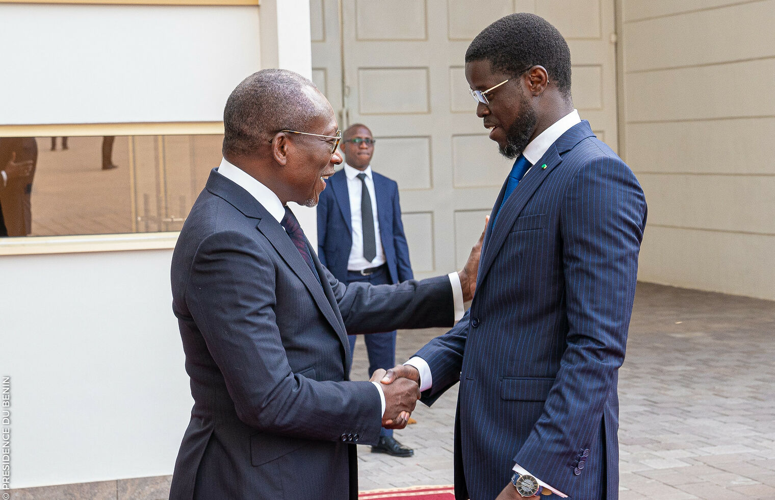 En réponse à l’invitation du Président Patrice TALON, le Président de la République du Sénégal, Son Excellence Monsieur Bassirou Diomaye Diakhar FAYE, est en visite de travail à Cotonou ce mardi 15 juillet 2025. Accueilli dans l’après-midi à l’Aéroport International Cardinal Bernardin GANTIN par le Ministre béninois des Affaires Étrangères, Monsieur Olushegun ADJADI BAKARI, le Chef de l’État sénégalais a ensuite été reçu au Palais de la Marina par son homologue béninois pour un tête-à-tête, suivi d’une séance élargie aux deux délégations.