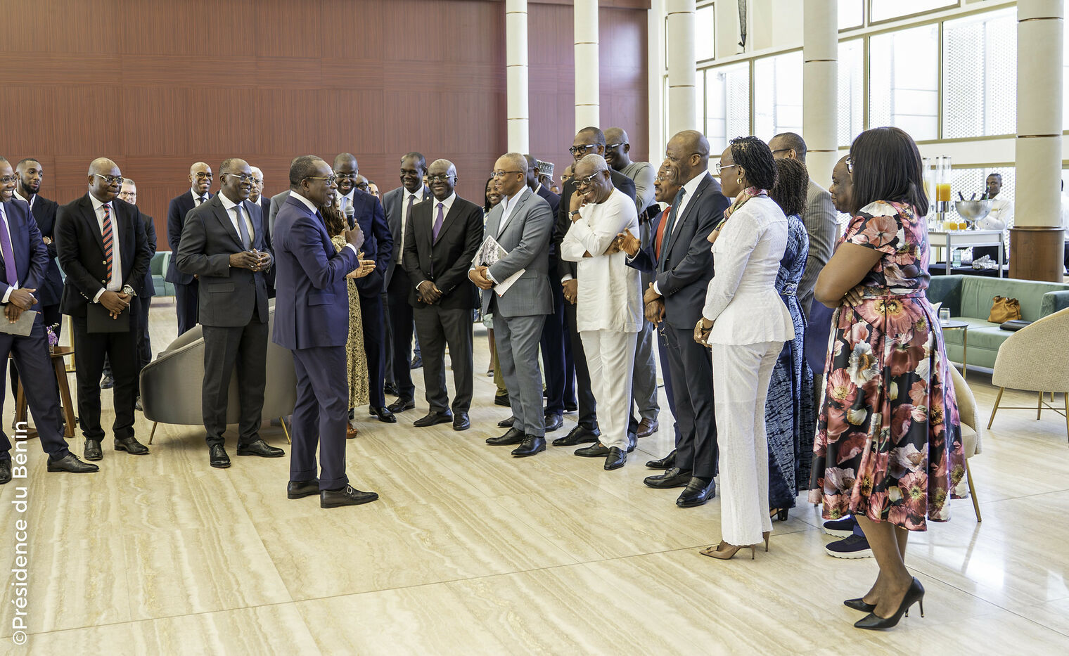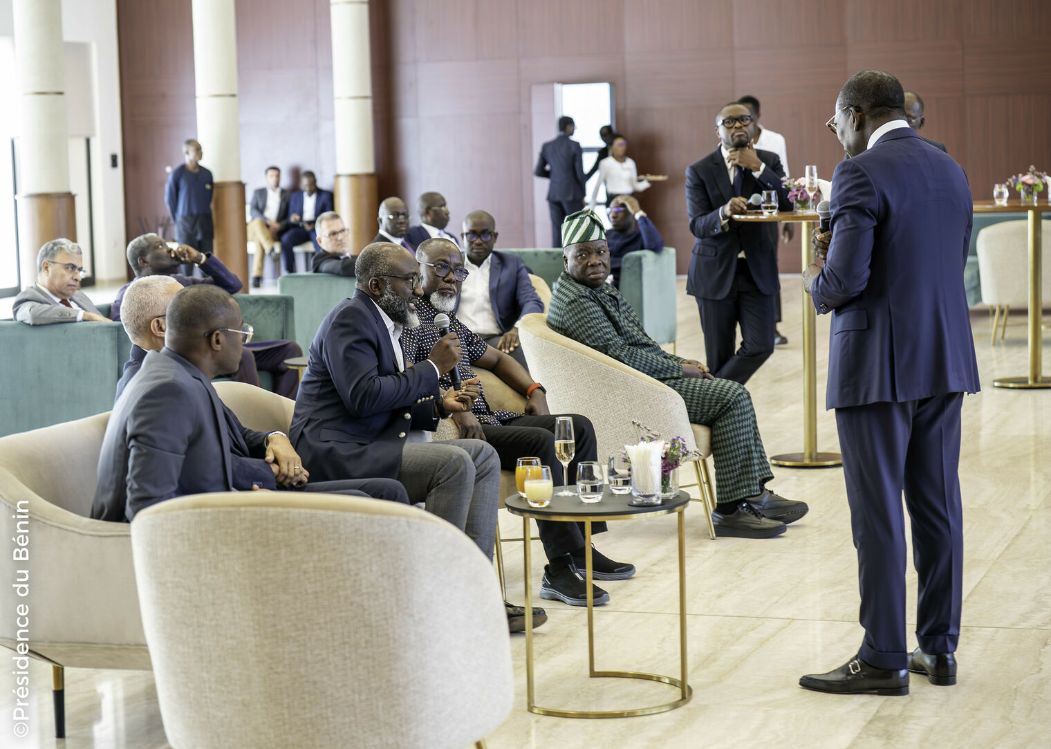 C'est dans une ambiance décontractée et dépouillée du décorum traditionnel, que le Président Patrice TALON, a échangé le vendredi 18 juillet 2025 au Palais de la Marina avec des chefs d’entreprises du secteur privé. Cette rencontre, voulue comme un moment d’écoute et de partage, illustre la volonté du Chef de l’État de bâtir, main dans la main avec les acteurs économiques, un écosystème favorable à l’investissement et à la croissance partagée.
