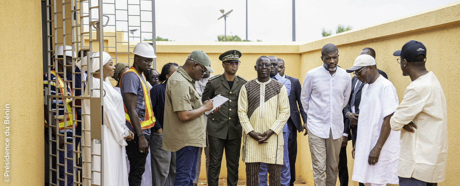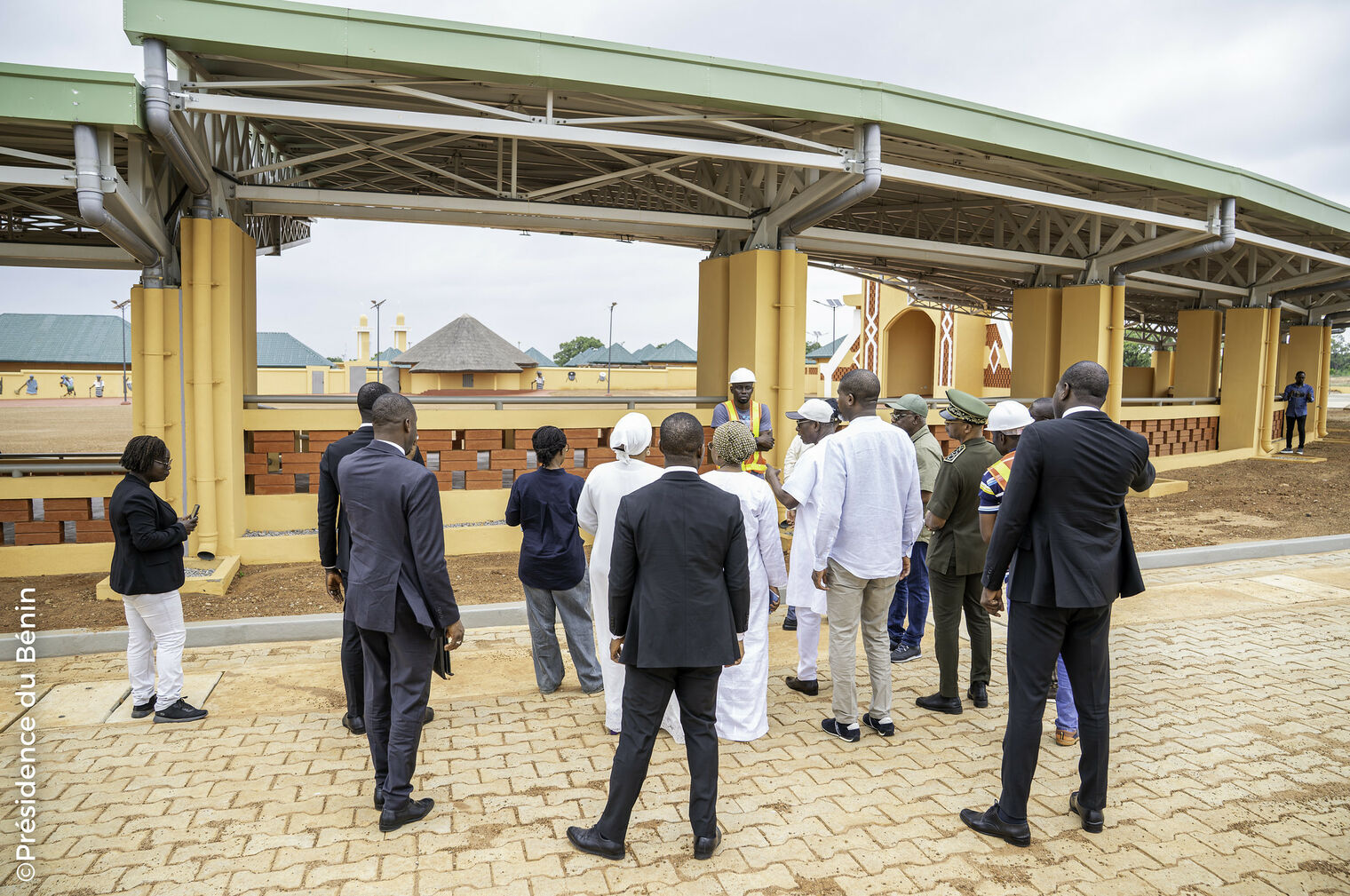 Accompagné des Ministres José TONATO du cadre de vie, Jean-Michel ABIMBOLA du tourisme et de la culture, Aurelie ADAM SOULE ZOUMAROU du numérique, de la Ministre Conseillère Mariam DJAOUGA Epse SACCA, de Monsieur Sindé CHEKETE, Directeur Général de Bénin Tourisme, du Préfet du Borgou, du Maire de Nikki, de techniciens et bien d’autres, le Président TALON a pris le temps d’inspecter l’ensemble du chantier. Il a pu apprécier l'état d'évolution des travaux tout en soulevant certaines exigences en termes de qualité. Le Chef de l'État a notamment formulé des recommandations claires pour assurer la livraison d’un ensemble d’infrastructures respectant les normes techniques et architecturales attendues.