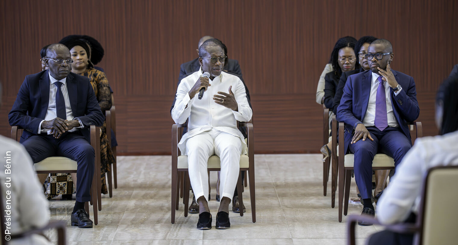 Les échanges à bâtons rompus entre le Chef de l'État et ses hôtes ont essentiellement porté sur les grandes questions de développement, de gouvernance, d'engagement citoyen, d'emploi, d’éducation, ainsi que sur les préoccupations sociales et économiques de la jeunesse béninoise.