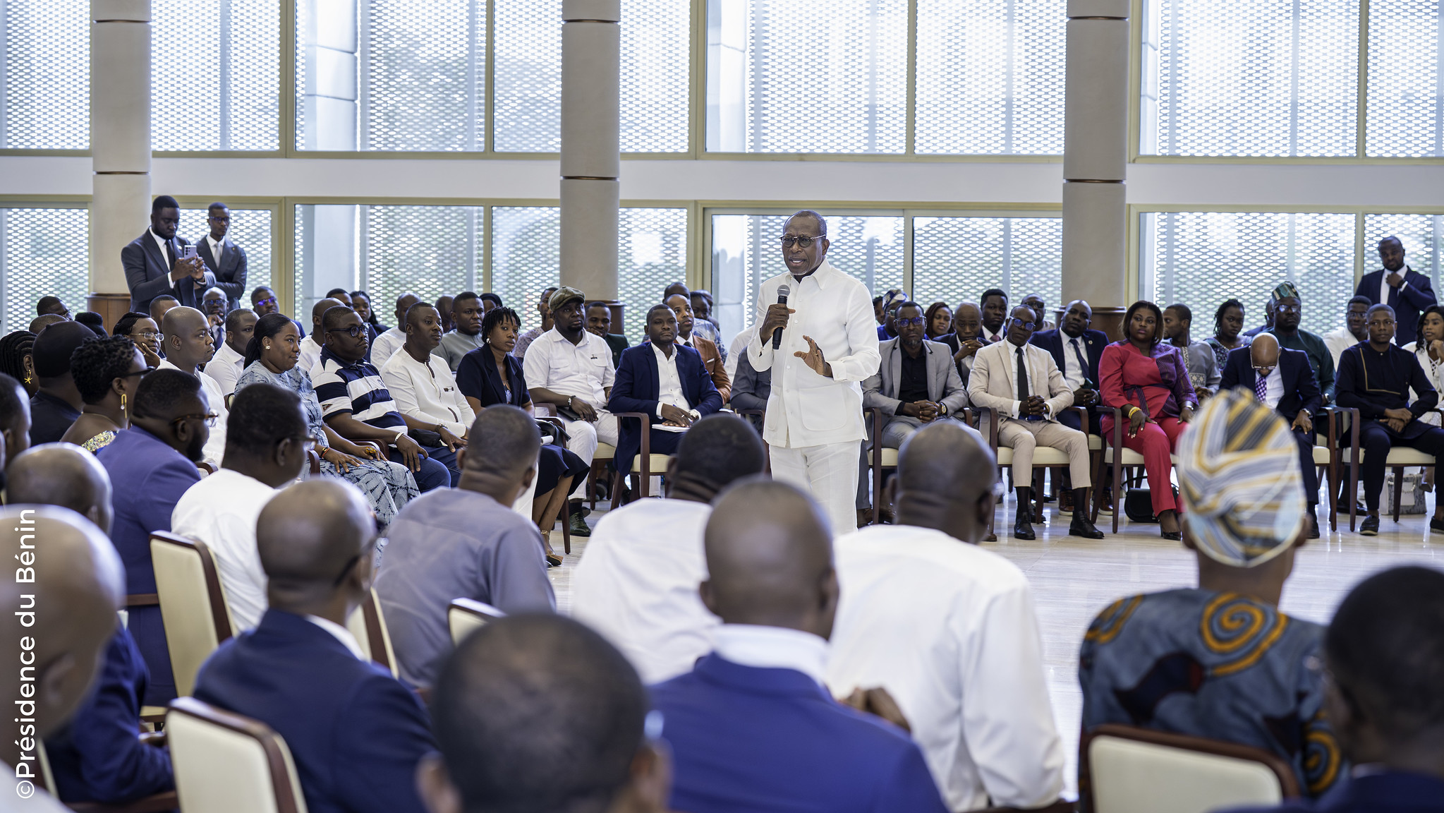 Issus de toutes les couches socio-professionnelles et de toutes tendances politiques confondues, ce sont plus de deux cents jeunes qui ont convergé, le lundi 28 juillet 2025, vers la salle du Peuple du Palais de la Marina, à l'invitation du Président de la République, Monsieur Patrice TALON.