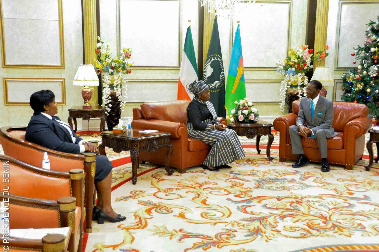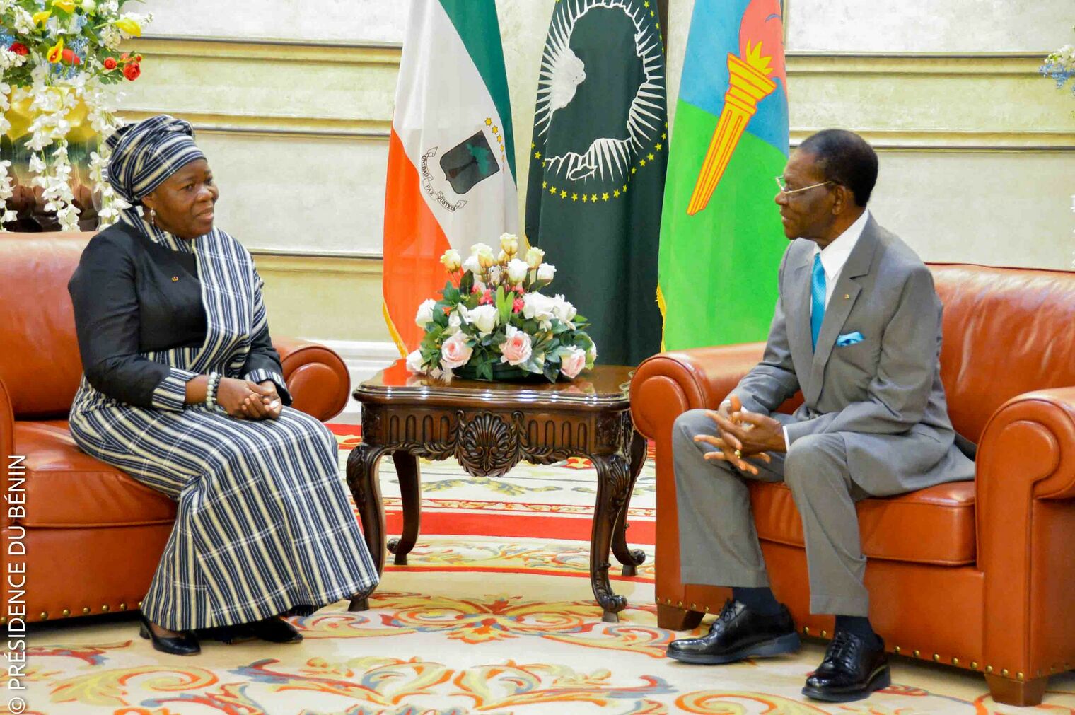Au cours de son séjour à Malabo, Mariam CHABI TALATA ZIMÉ YÉRIMA a été reçue en audience par le Président de la République de Guinée Équatoriale, S.E.M. Téodoro OBIANG NGUEMA MBASOGO, Grand Maître des Ordres nationaux. Elle lui a présenté le point de sa mission ainsi que les avancées observées dans la préparation de la 12ème conférence.