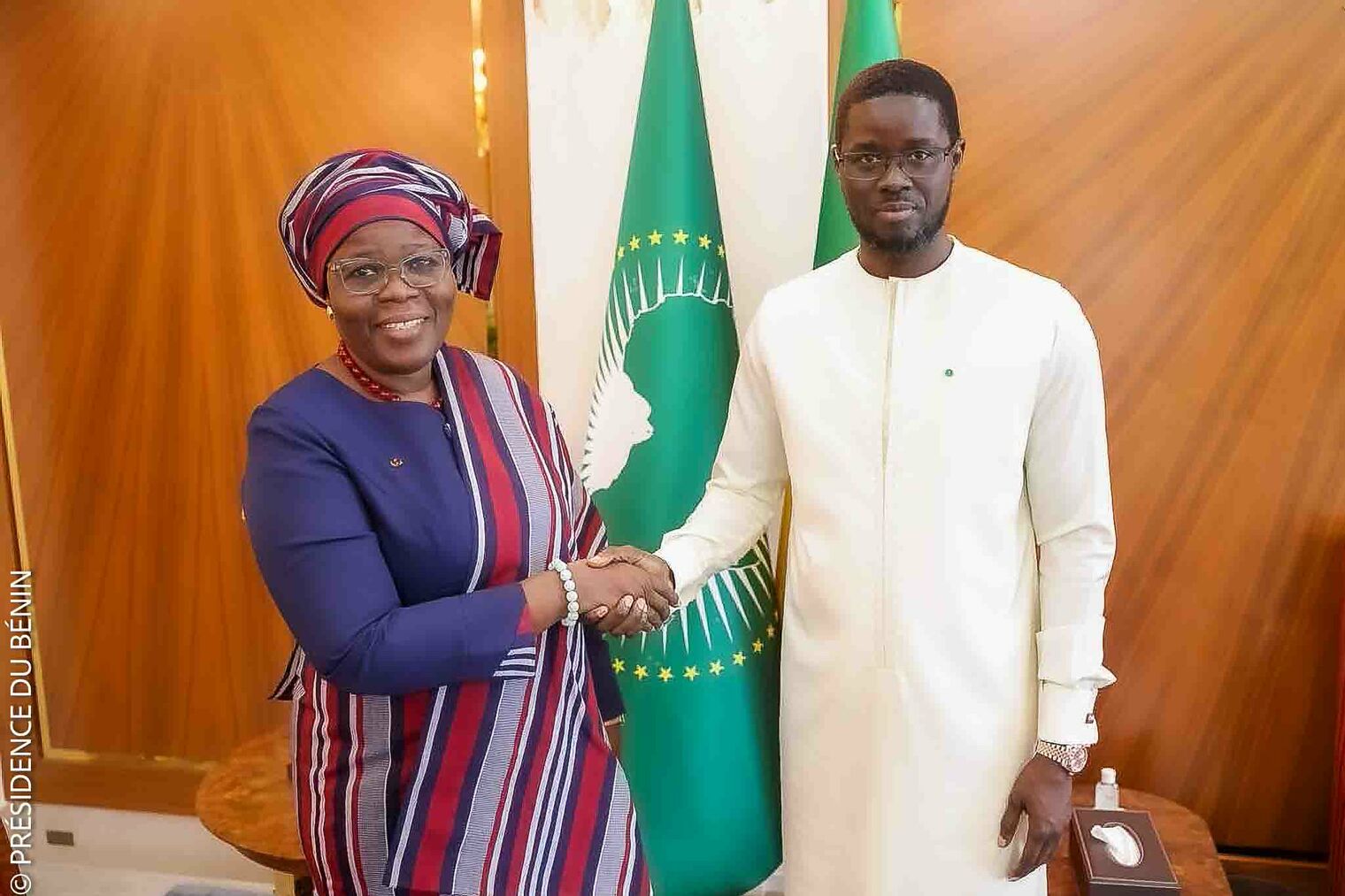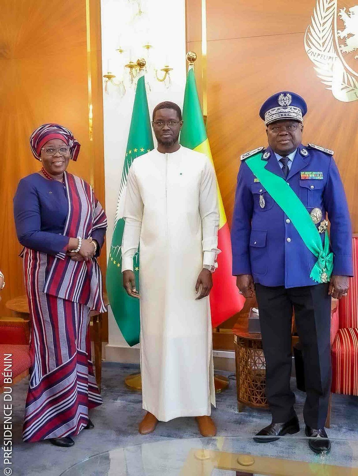 Madame Mariam CHABI TALATA ZIMÉ YÉRIMA a ensuite été reçue en audience par le Grand Maître des Ordres nationaux du Sénégal, le Président Bassirou Diomaye FAYE, à qui elle a également fait le point de sa mission, tant sur les préparatifs de la conférence de Malabo que sur la mise en œuvre des recommandations de Cotonou.