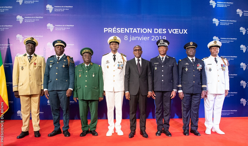 J’ai été particulièrement sensible aux bons vœux que l’Amiral, Chef d’État-Major Général des Forces Armées Béninoises, a bien voulu formuler à mon endroit ainsi qu’à l’endroit de ma famille et de mon Gouvernement, au nom des Forces de Défense et de Sécurité et des forces assimilées.